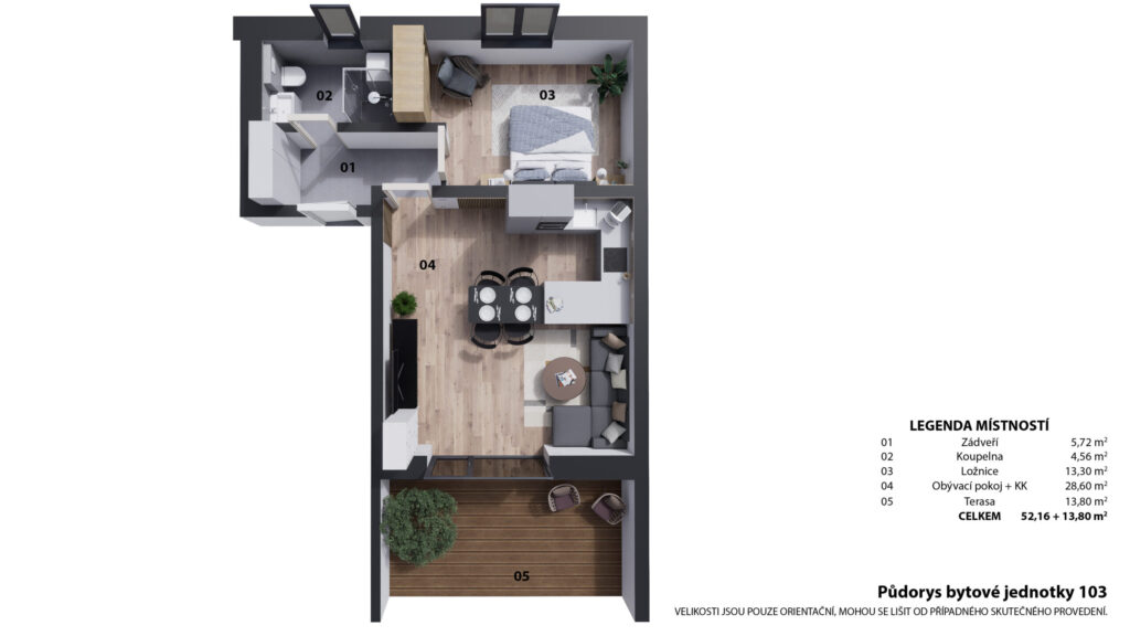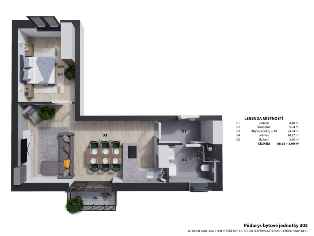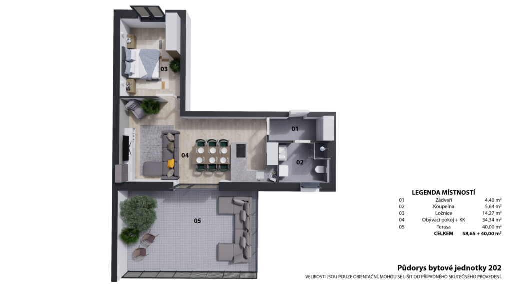 | 202 | 59,9 | 58,65 | 2+kk | 40 | terasa | ano | otevřit | prohlédnout | 5 390 000 Kč | volné |