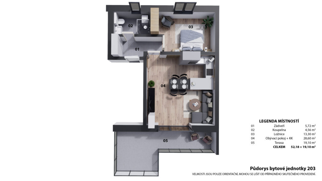 | 203 | 54 | 52,18 | 2+kk | 19,1 | terasa | ano | otevřit | prohlédnout | 4 590 000 Kč | volné |