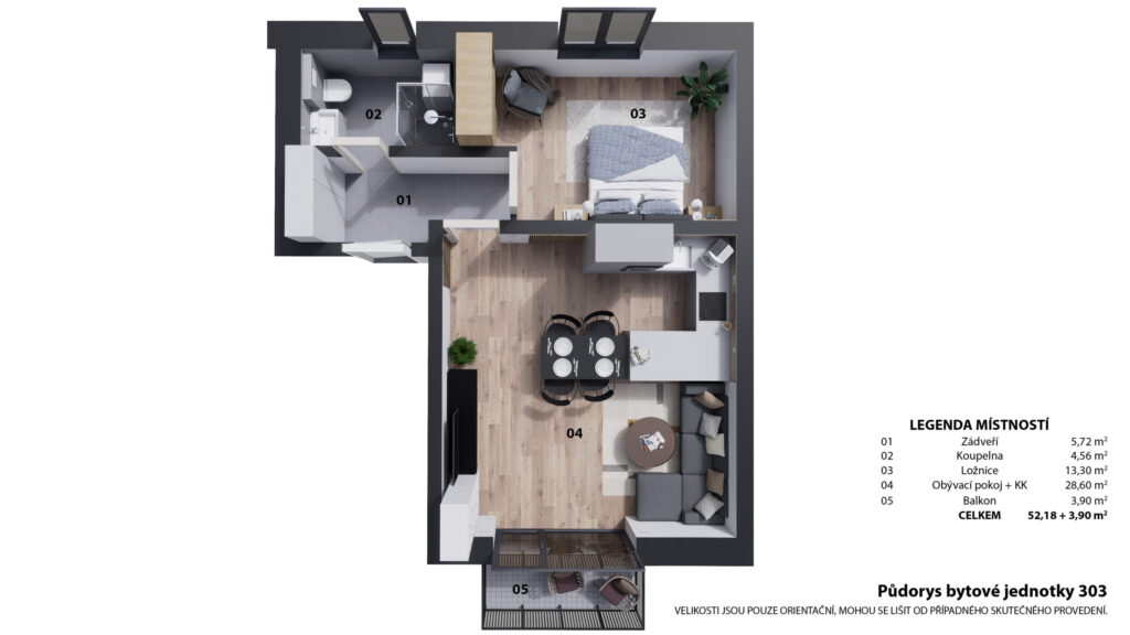 | 303 | 54 | 52,18 | 2+kk | 3,9 | balkon | ano | otevřit | prohlédnout | 4 090 000 Kč | volné |