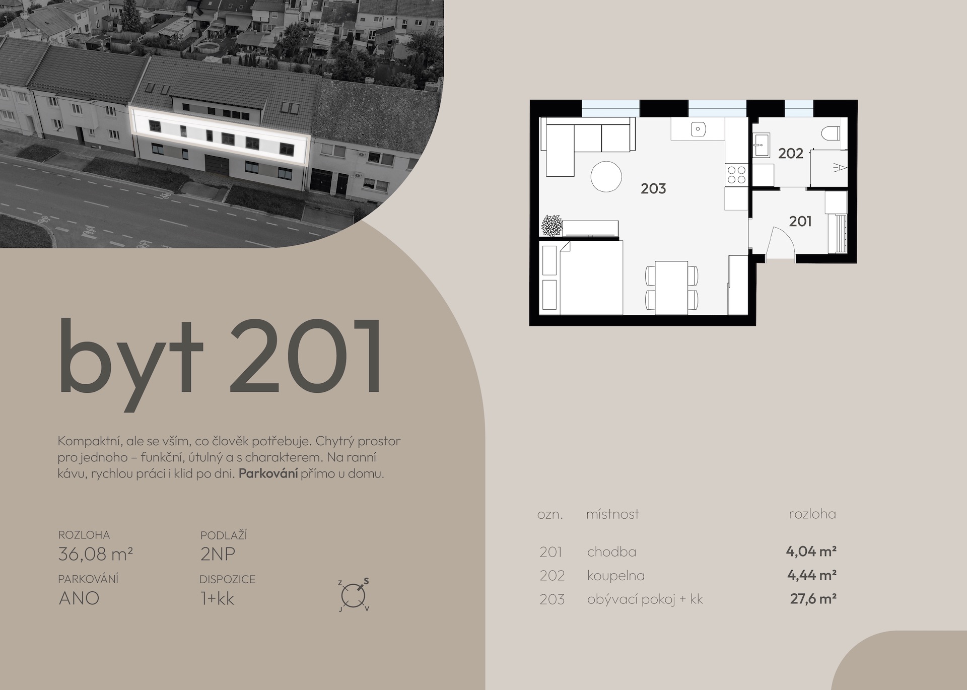 | 201 | 36,8 | 36,08 | 1+kk | ano | otevřit | prohlédnout | 2 990 000 Kč | rezervováno | ||