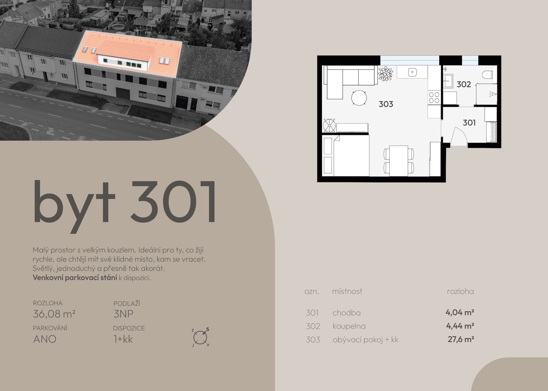 | 301 | 36,8 | 36,08 | 1+kk | ano | otevřit | prohlédnout | 2 990 000 Kč | volné | ||