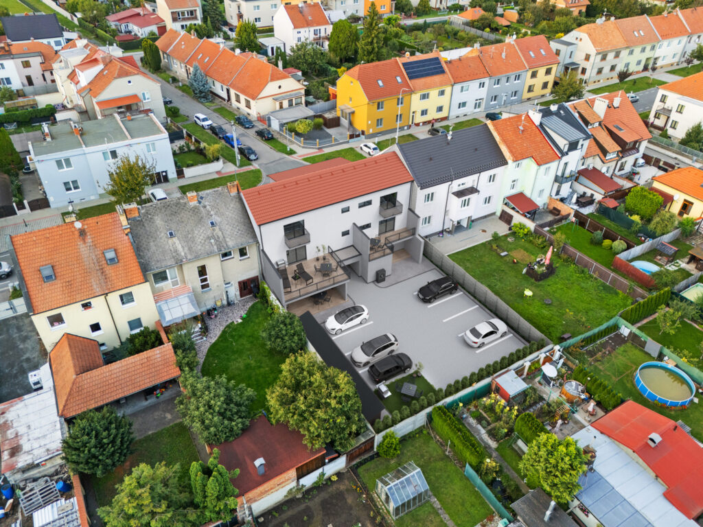 Parkování je možné přímo ve dvoře, kde jsou umístěny také sklepní koje pro každý byt.